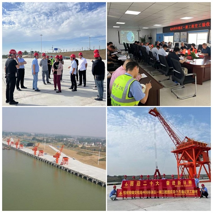2022年9月29日,安徽交航公司亳州利辛港區(qū)一期工程項目順利通過交工驗收,比計劃工期提前4個月交工,即將正式投入運營。該工程建設12個500~1000噸級泊位,從上游至下游依次布置11個散貨(礦建材料)進口泊位和1個散貨(糧食)出口泊位,碼頭年設計吞吐量650萬噸。