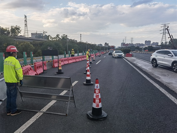 8月7日下午4點,完成第一階段導改,馬鞍山南互通右幅交通導改順利完成。