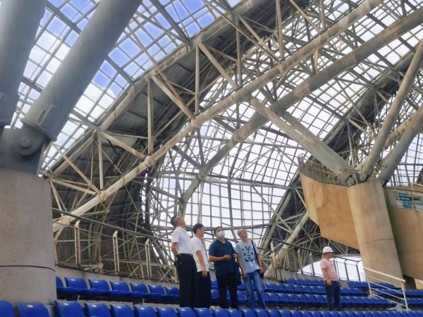 檢查組圍繞分站場所水電消防、設(shè)備使用安全防護、化學藥品管理等方面排查存在的安全隱患問題,查閱了有關(guān)人員培訓、檢測方案及檢測操作規(guī)程等檔案資料,并聽取了分站前期籌建、經(jīng)營管理等情況匯報。對結(jié)構(gòu)二所安慶市體育中心、迎江禪寺法堂等安全性鑒定項目安全管理狀況進行了檢查,并與現(xiàn)場檢測人員進行技術(shù)交流,針對重點關(guān)注的高處作業(yè)等安全風險防范及鑒定質(zhì)量把控提出具體要求。