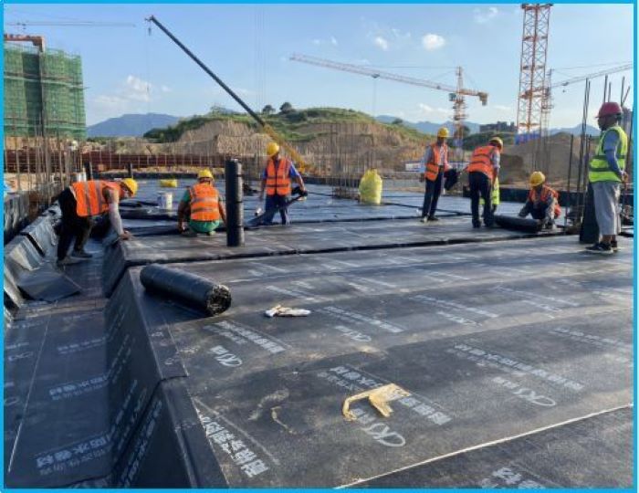 二、安慶建投(第二公司):岳西中學(xué)一期PPP項(xiàng)目國慶期間搶抓有利天氣進(jìn)行底板防水作業(yè)