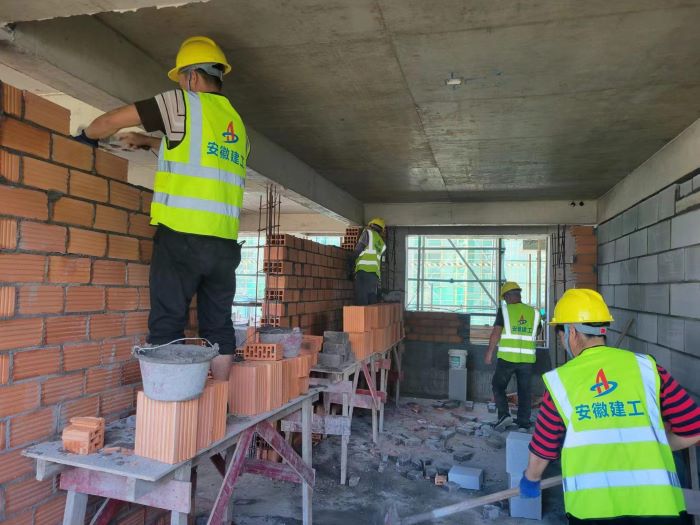 三、新安江建投(第三公司):涇縣龍井苑三期安置房EPC項(xiàng)目國慶期間進(jìn)行墻體砌筑