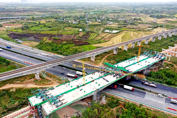 國慶期間,項目負責(zé)人每天檢查項目施工進度、安全管理情況和實體工程質(zhì)量,各工區(qū)負責(zé)人施工現(xiàn)場協(xié)助指導(dǎo)?,F(xiàn)場20余臺大型機械設(shè)備連續(xù)施工,100余名參建者晝夜奮戰(zhàn),順利完成滬陜主橋右幅中跨合龍。