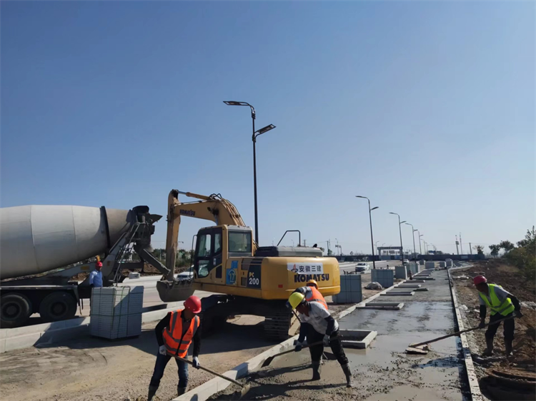 水利交通公司肥西產(chǎn)融項目薛家崗路全長3.2公里,現(xiàn)階段正在進行道路瀝青面層、人行道及綠化工程、交通工程的施工,截至目前,薛家崗路道路瀝青下面層已完成過半,綠化工程完成60%,路燈燈桿安裝超過65%。