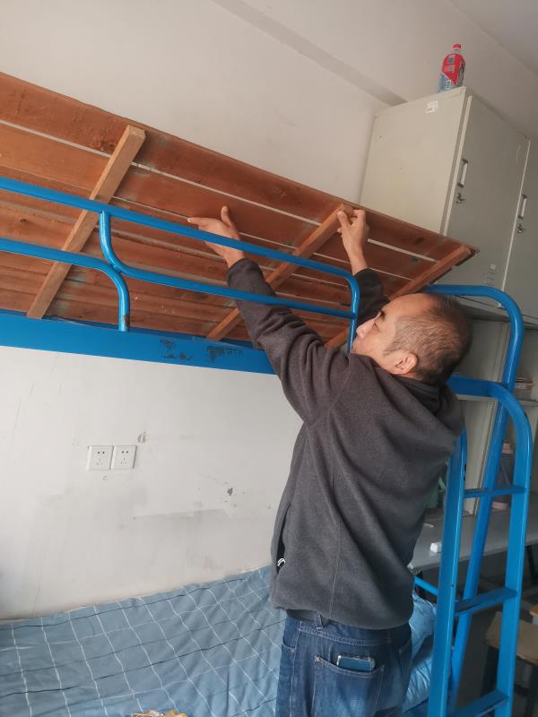 按照校園封閉管理統(tǒng)一部署,二百余名教職工和第三方員工住進校園。宿管辦會同三系積極動員在3號樓居住的女生搬遷到2號樓。不同班級、不同年級的女生要住到一起,搬遷阻力可想而知。在宿管辦和系部的不懈努力下,七十余名女教職員工順利住進3號樓女生宿舍。男生宿舍樓雖也有空床位,但滿足不了男教職員工住宿需求。第三方住校的男員工有三十多人,綜合辦和物業(yè)打掃了兩大間空教室,宿管辦傾其所能為他們湊足了三十余張床板。第三方有部分員工被隔離在家,人手相對不足,住校員工十分辛苦,都希望晚上能睡個安穩(wěn)覺。因為需要十多人住在一間教室里,難免相互影響睡眠,他們情緒很大,部分員工干脆在車上過夜,存在一定的安全隱患。安全保衛(wèi)處遇到問題不推諉、碰到困難不上交,做了大量細致的思想工作,對他們進行耐心安撫,最終取得了他們的理解和支持,三十余名男員工住進了教室。有幾對雙職工孩子年幼,需要有人照看。安全保衛(wèi)處積極爭取政策,讓他們將孩子帶進校園,既解決了他們的后顧之憂,又解決了食堂人手不足的燃眉之急。