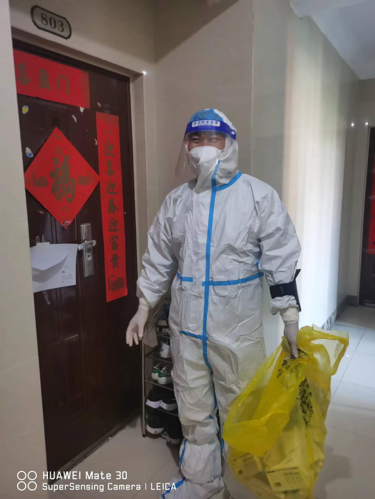 10月27日,合肥市濱湖區(qū)許多小區(qū)實(shí)行了封閉管理,社區(qū)工作人員工作量倍增,人手嚴(yán)重不足。得知情況后,八公司副經(jīng)理?xiàng)钶x攜手妻子一起加入這場(chǎng)戰(zhàn)“疫”,作為團(tuán)隊(duì)中年齡較大的志愿者,也是一名黨員,他主動(dòng)要求上門(mén)協(xié)助給業(yè)主做核酸取樣,分發(fā)抗原檢測(cè)試劑和生活物資,連續(xù)工作多天的他仍然保持著高昂的工作熱情,在社區(qū)志愿者中廣受好評(píng)。