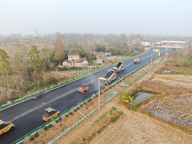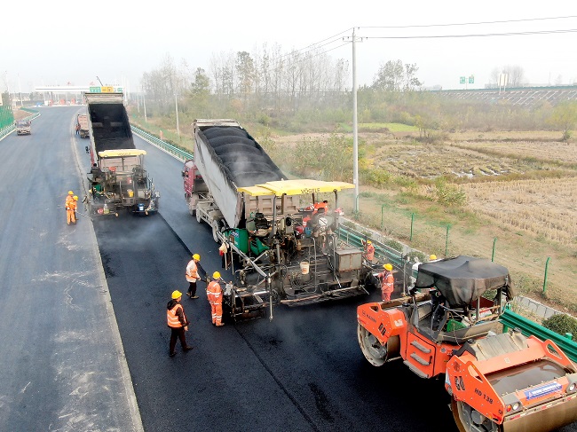 作為安徽省在建高速公路單標(biāo)段路面施工里程最長的項(xiàng)目,路橋集團(tuán)滁天高速04標(biāo)于2022年5月底,啟動(dòng)瀝青下面層試驗(yàn)段施工,6月初開始規(guī)?;┕?。項(xiàng)目部精心組織、科學(xué)管理,咬緊節(jié)點(diǎn)目標(biāo)不放松,利用晴好天氣全力搶抓施工,成立路面攻堅(jiān)突擊隊(duì),責(zé)任到人、掛圖作戰(zhàn),發(fā)揮勞動(dòng)競賽激勵(lì)作用,加速推進(jìn)路面施工建設(shè)進(jìn)度。積極調(diào)動(dòng)各方積極性,優(yōu)化調(diào)整施工部署,科學(xué)配置資源,落實(shí)好施工組織和疫情防控各項(xiàng)措施。歷時(shí)5個(gè)月的時(shí)間,項(xiàng)目部克服了周邊地區(qū)疫情復(fù)雜、地材緊缺、夏季持續(xù)高溫酷暑等重重困難,高效完成40公里主線及釜山樞紐互通立交、鄭集樞紐互通立交、半塔互通立交、天長西服務(wù)區(qū)、半塔收費(fèi)管理小區(qū)瀝青路面工程量。