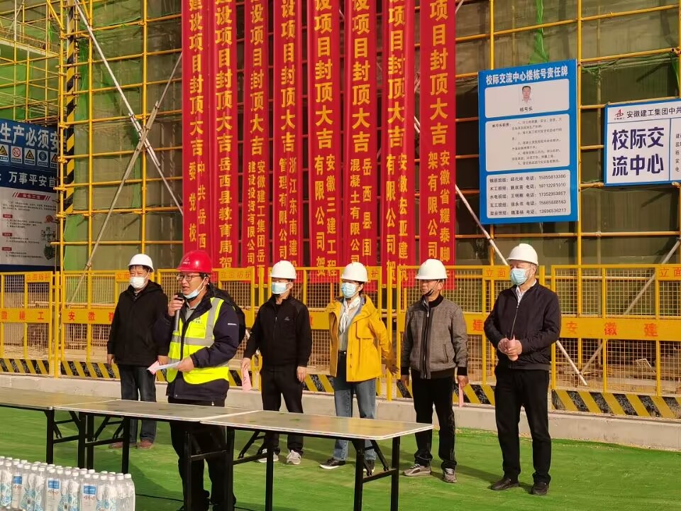 11月6日上午,由安徽建工集團(tuán)股份有限公司海外事業(yè)部承建的岳西黨校建設(shè)項(xiàng)目校際交流中心主體結(jié)構(gòu)封頂,這是該項(xiàng)目首個(gè)封頂?shù)膯误w建筑。岳西縣委黨校常務(wù)副校長徐少宏、縣教育局局長聶咸群、安徽建工股份副總經(jīng)理、海外事業(yè)部黨總支書記、總經(jīng)理邢應(yīng)梅出席封頂儀式。