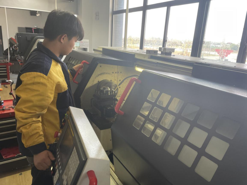 數(shù)控綜合應(yīng)用技術(shù)選手認真調(diào)試