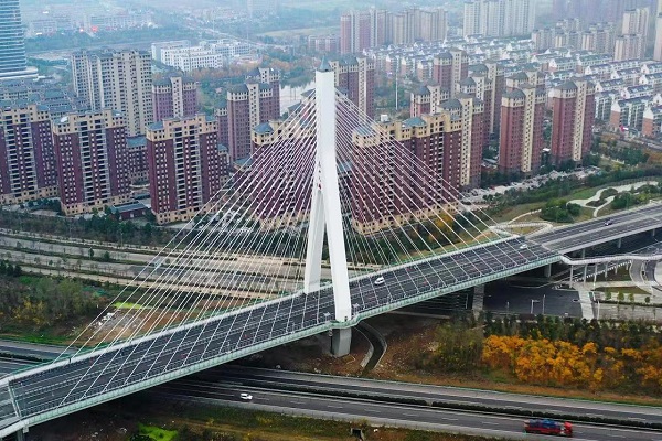明光市嘉山大道上跨橋項目是明光市城區(qū)發(fā)展東西向交通的城市主干道,上跨寧洛高速主橋為獨塔雙索面人字形斜拉橋,橋梁全長715.9米,主塔高度108m,為滁州地區(qū)第一高塔斜拉橋。項目主塔于2021年8月1日封頂后,隨即轉(zhuǎn)入主梁施工,在后續(xù)一年多的時間里,項目部把握施工方向、參建隊伍聽指揮齊奮斗,冬戰(zhàn)嚴寒、夏戰(zhàn)酷暑,不僅克服了上跨寧洛高速交通安全隱患,而且還攻克了前支點牽索掛籃行走、錨固、斜拉索預(yù)張拉、主梁索導(dǎo)管安裝、預(yù)應(yīng)力束預(yù)安裝等多項技術(shù)難關(guān),最終提前半年完成所有項目工程實現(xiàn)竣工通車。
