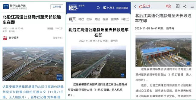 中央人民政府門(mén)戶(hù)網(wǎng)站、新華社、光明網(wǎng)、中國(guó)青年網(wǎng)、中安在線(xiàn)(中英文兩版)、《市場(chǎng)星報(bào)》、《馬鞍山日?qǐng)?bào)》、《新余日?qǐng)?bào)》等國(guó)家級(jí)、省、市級(jí)主流媒體先后圍繞路橋集團(tuán)建設(shè)成果、為通車(chē)所付出的辛勤努力予以重點(diǎn)呈現(xiàn)。