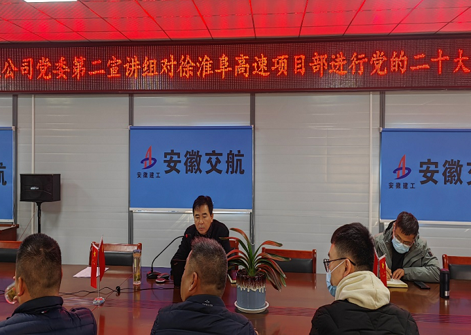 12月15日上午,公司黨委副書記、總經(jīng)理杜海峰赴徐淮阜高速項目部開展黨的二十大精神專題宣講。