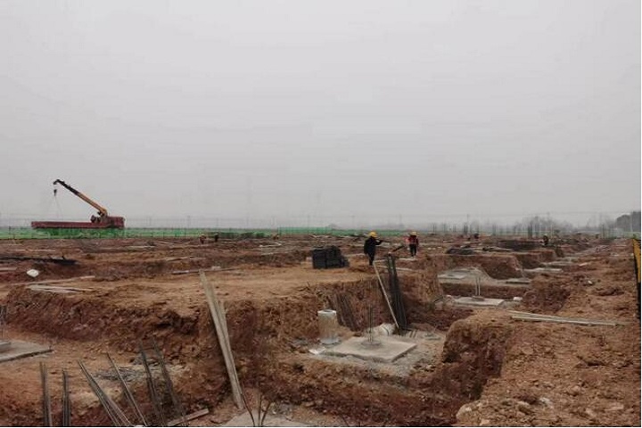 樅陽(yáng)新能源汽車產(chǎn)業(yè)園基礎(chǔ)設(shè)施建設(shè)項(xiàng)目嚴(yán)格落實(shí)防疫措施,多個(gè)工作面同時(shí)開展,生產(chǎn)作業(yè)穩(wěn)步推進(jìn)。目前甲類庫(kù)基礎(chǔ)墊層與樁芯混凝土已澆筑完成,危廢庫(kù)土方開挖完成,泵房及罐區(qū)承臺(tái)模板支撐完成,110kV降壓站正破土中。