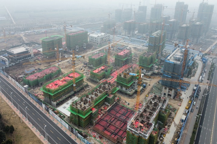 安建岳湖臺(tái)項(xiàng)目以黨的二十大精神為抓手,疫情施工雙統(tǒng)籌,嚴(yán)格落實(shí)防疫措施,十多個(gè)工作面同時(shí)施工,生產(chǎn)作業(yè)井然有序。目前中央景觀地庫(kù)以北14棟主樓中,2、5號(hào)樓已主體結(jié)構(gòu)封頂,19、20號(hào)樓主體結(jié)構(gòu)已施工至8層,其余10棟樓均已施工至3層。