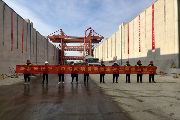 受嚴(yán)重的洪澇災(zāi)害影響,派河口船閘項目河道淤泥堵塞,工期嚴(yán)重滯后,按傳統(tǒng)的施工辦法,難以如期完工。在公司的大力支持下,由安徽路港自主研制的新一代“造閘機”橫空出世,為項目施工按下快捷鍵,提前四個半月完成節(jié)點任務(wù),跑出了路港速度。