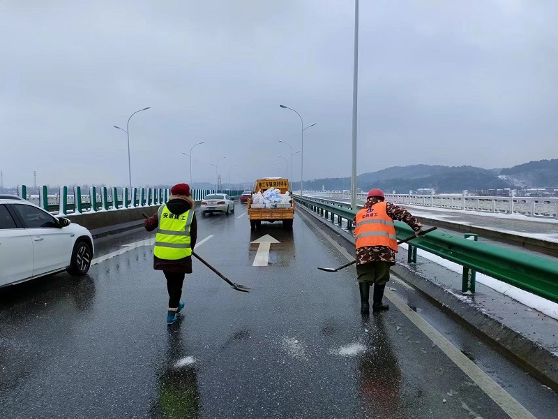 涇縣、績(jī)溪、銅陵、固鎮(zhèn)等市政道路運(yùn)營(yíng)項(xiàng)目和舒城G206、廣德S215、太湖G105等國(guó)省干線PPP項(xiàng)目立即啟動(dòng)雨雪天氣應(yīng)急保障預(yù)案,及時(shí)撒布融雪劑,出動(dòng)各類機(jī)械開(kāi)展除雪保暢,確保受降雪影響路段保持正常通行。