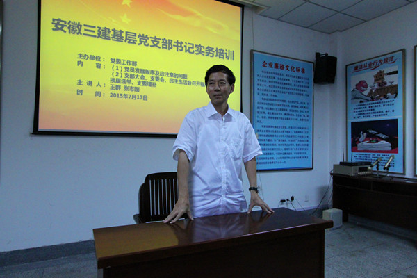 7月17號下午,安徽三建公司黨委工作部舉辦了一期黨支部書記實(shí)務(wù)培訓(xùn)班,全公司37個基層黨支部的負(fù)責(zé)人悉數(shù)到會參加培訓(xùn)。